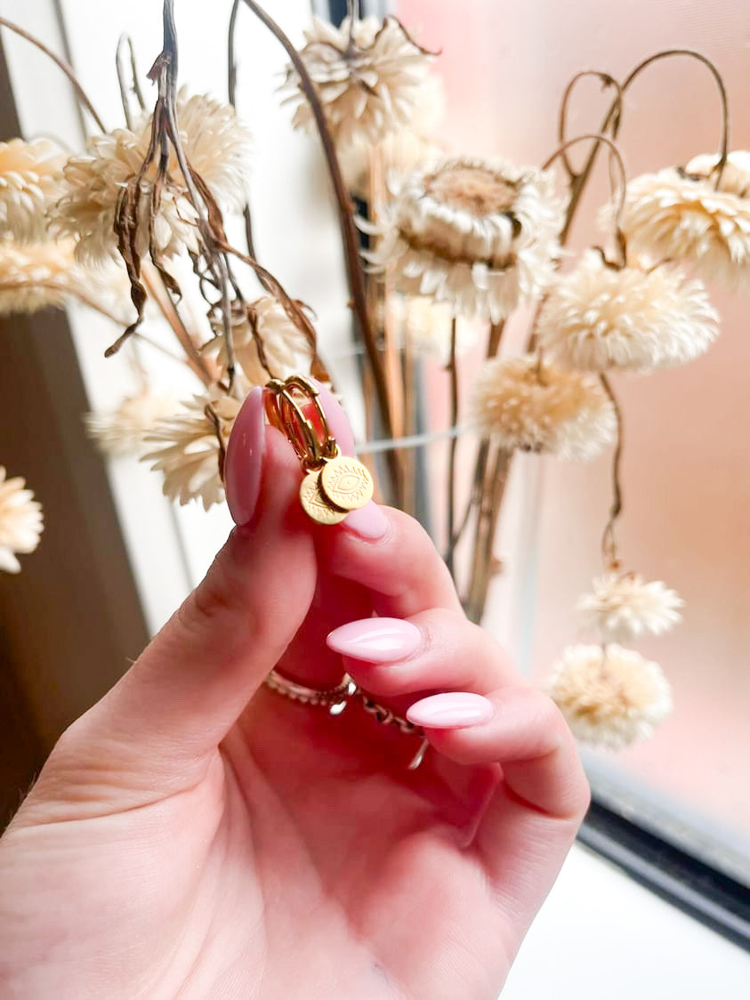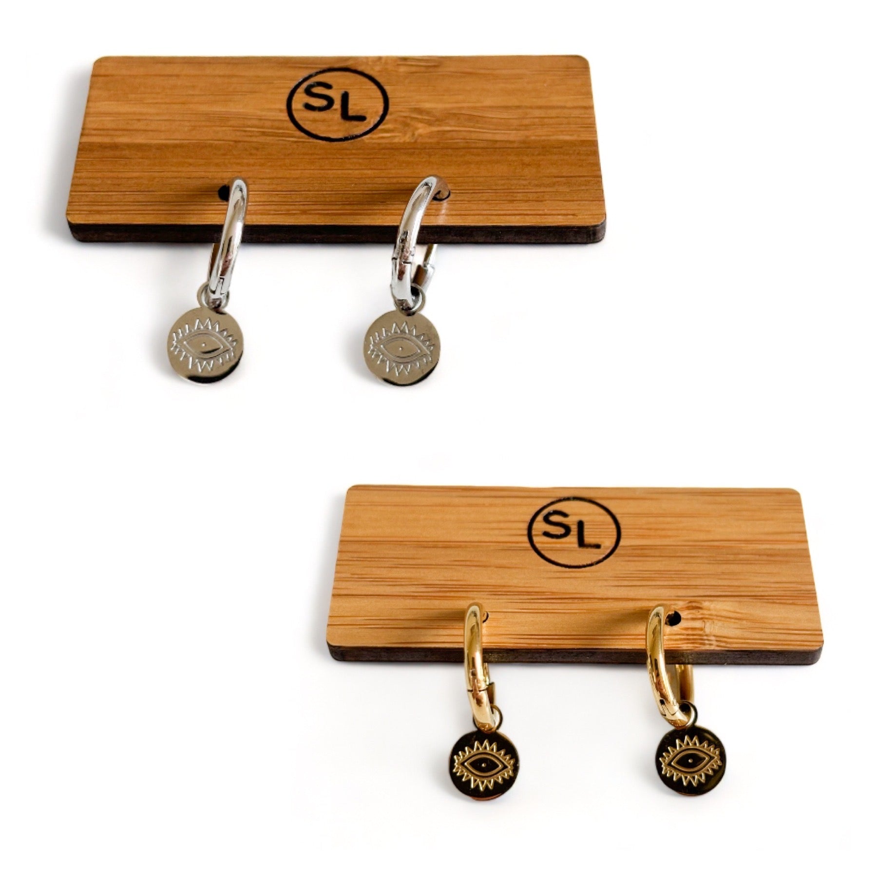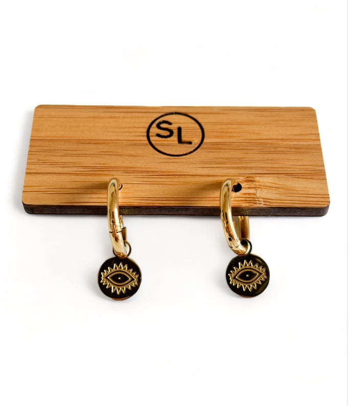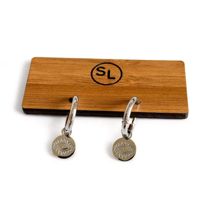 Introducing "Egypt Eye" earrings: Embodying the mystique and allure of ancient Egypt, these stainless steel huggie hoop style earrings come in both 14k gold plated and silver finishes. Featuring a captivating round disc with intricate eye detail drop, they exude an aura of intrigue and sophistication. With an earring height of 2cm and an eardrop width of 0.8cm, they offer a subtle yet captivating look. Named after the iconic symbol of protection, "Egypt Eye" earrings are also waterproof, making them perfect for everyday wear. Channel the timeless elegance of ancient Egypt with "Egypt Eye" earrings, seamlessly blending style with durability for the modern woman.