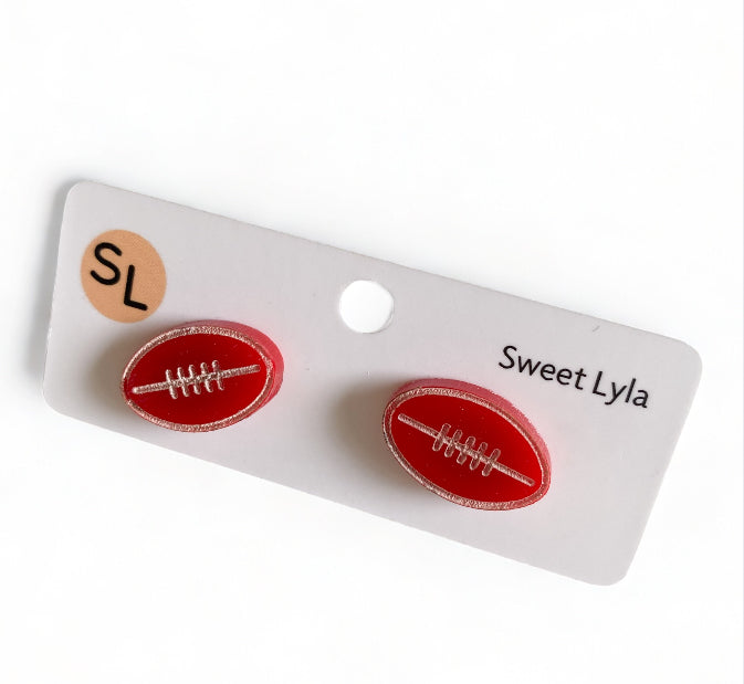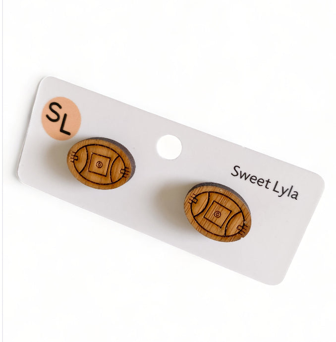 SL - Sweet Lyla Football Supporter Earrings - Red Footy, Oval and Goal Posts