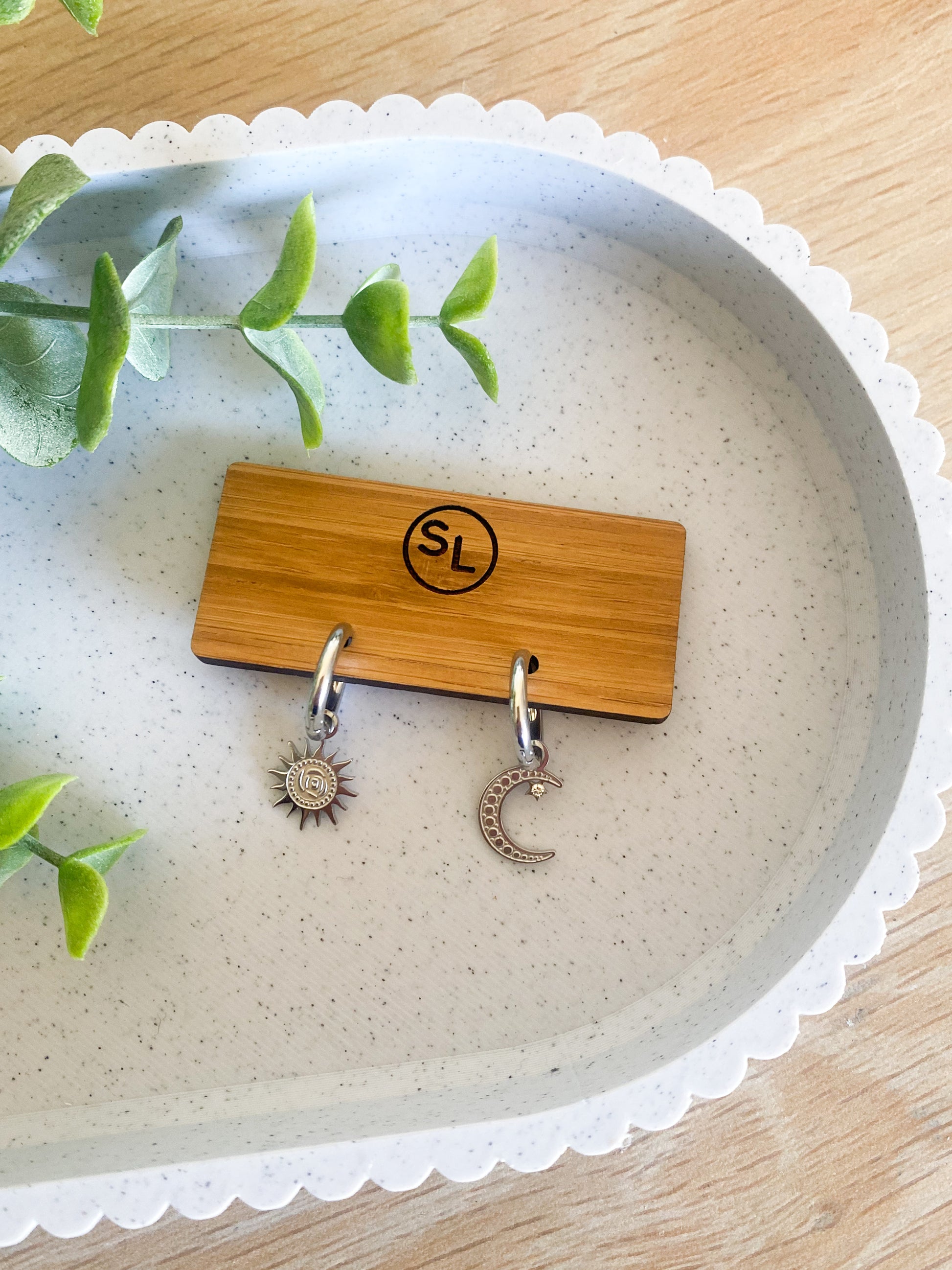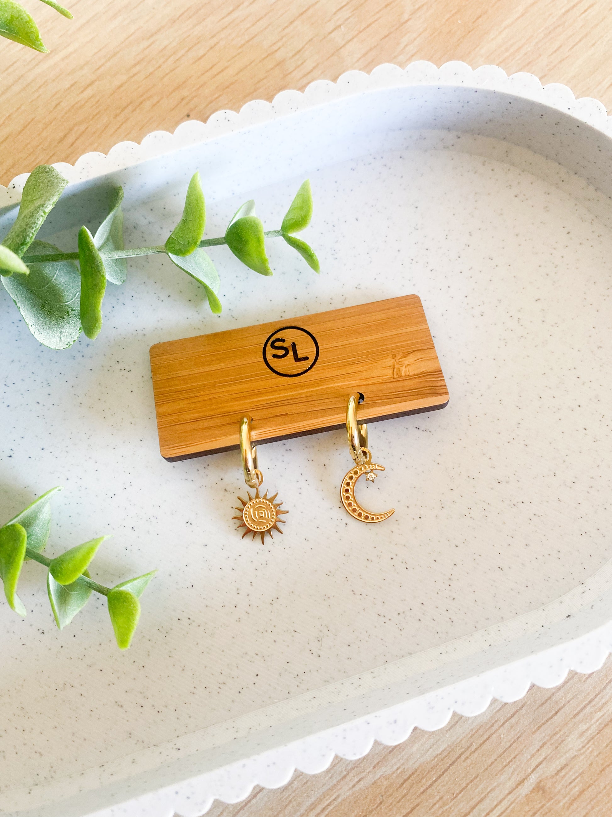 Introducing "Sun & Moon" from our Luxe Collection: Experience the enchanting beauty of both the sun and the moon with these exquisite earrings, available in both silver and 14k gold plated stainless steel options. Combining the warmth of the sun and the sparkle of the moon, "Sun & Moon" exudes timeless elegance and sophistication. Inspired by founder Karen's fond memories of the sun and moon era from her younger years, these earrings serve as a heartfelt tribute to that cherished time. With an approximate eardrop height of 1.7cm and a width of 1.2cm, each detail is unique, ensuring that no two earrings are exactly alike. Waterproof for everyday wear, "Sun & Moon" earrings allow you to carry a piece of nostalgia with you wherever you go. Elevate your look and reconnect with the magic of the sun and moon with "Sun & Moon" from our Luxe Collection.