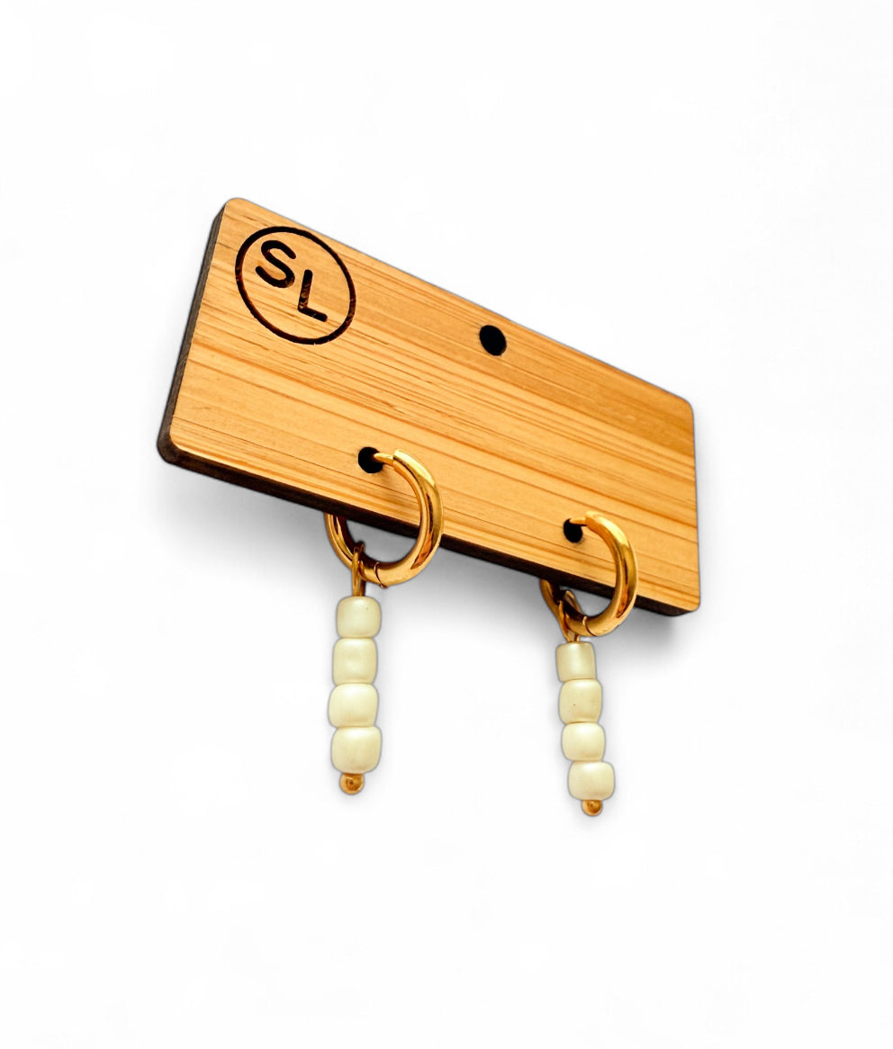 Elegant and refined with a modern twist, this 18k gold-plated stainless steel hoop features four delicate square-cut white pearls that dangle with graceful movement. Lightweight yet eye-catching, it blends contemporary structure with timeless softness—a perfect finish for day or night.