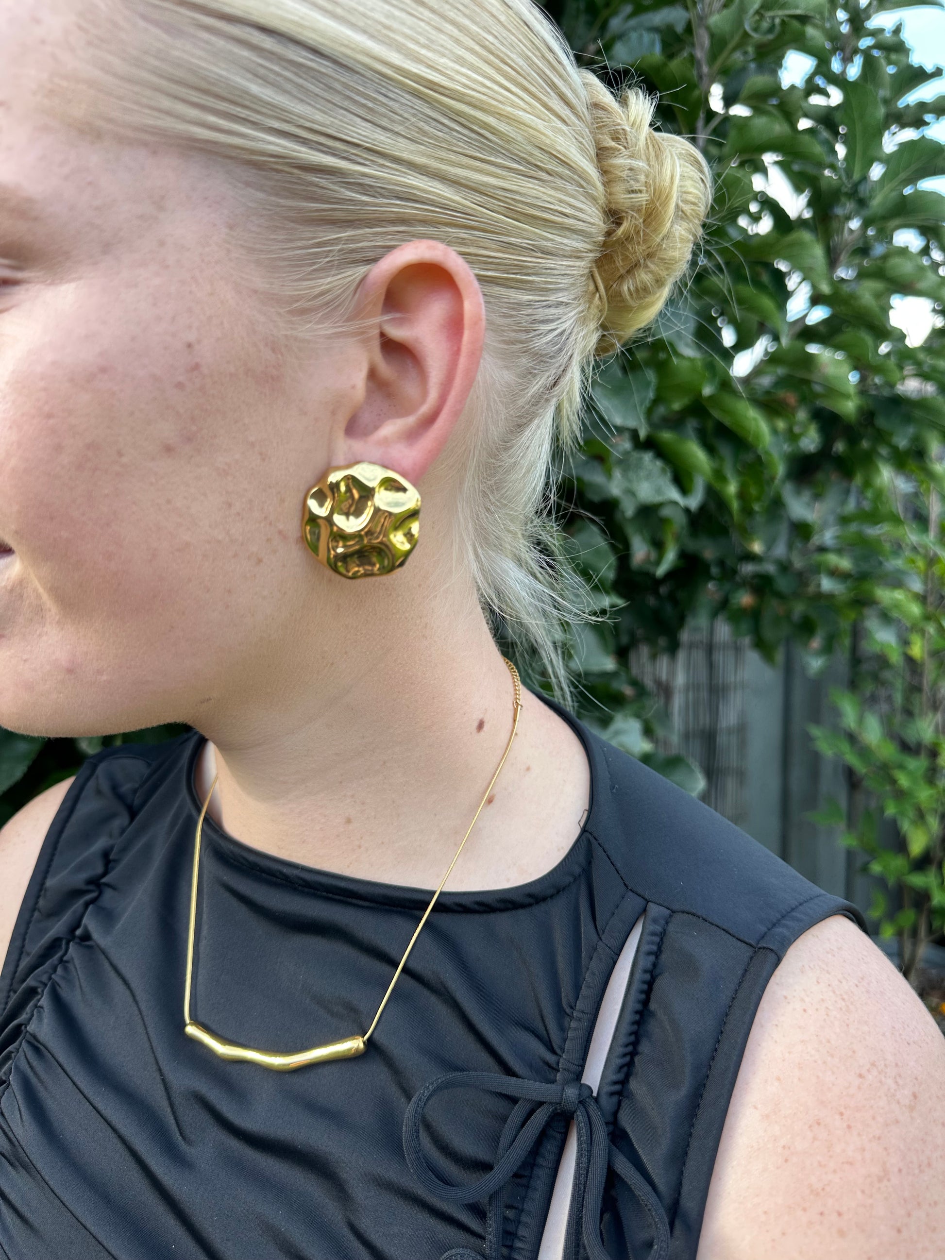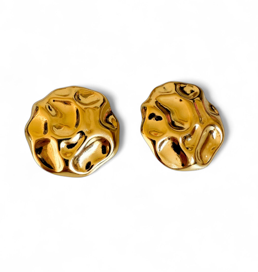 Pop the cork and sparkle with The Champagne Bubbles earrings — a true celebration of style and elegance. These bold round statement earrings, plated in luxurious 18k gold plated stainless steel, feature unique bubble-like textures that shimmer with every turn, adding a playful yet sophisticated touch to any look. With a 3cm diameter, their eye-catching design makes them the perfect finishing piece for both casual outings and glamorous events.