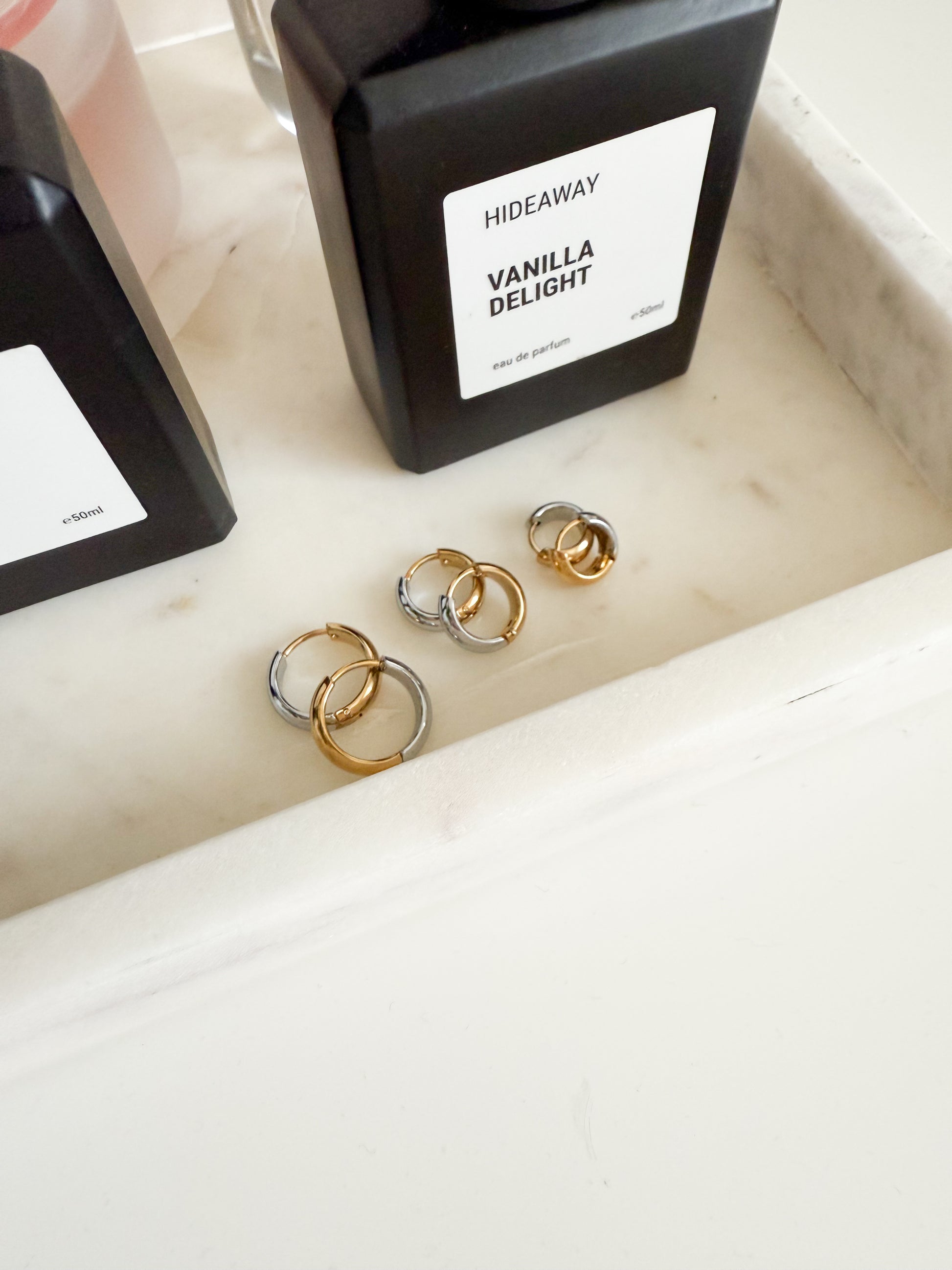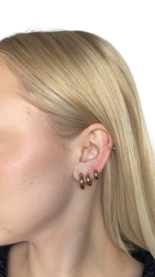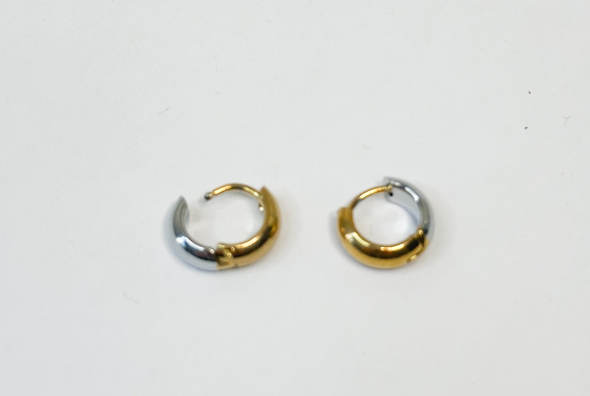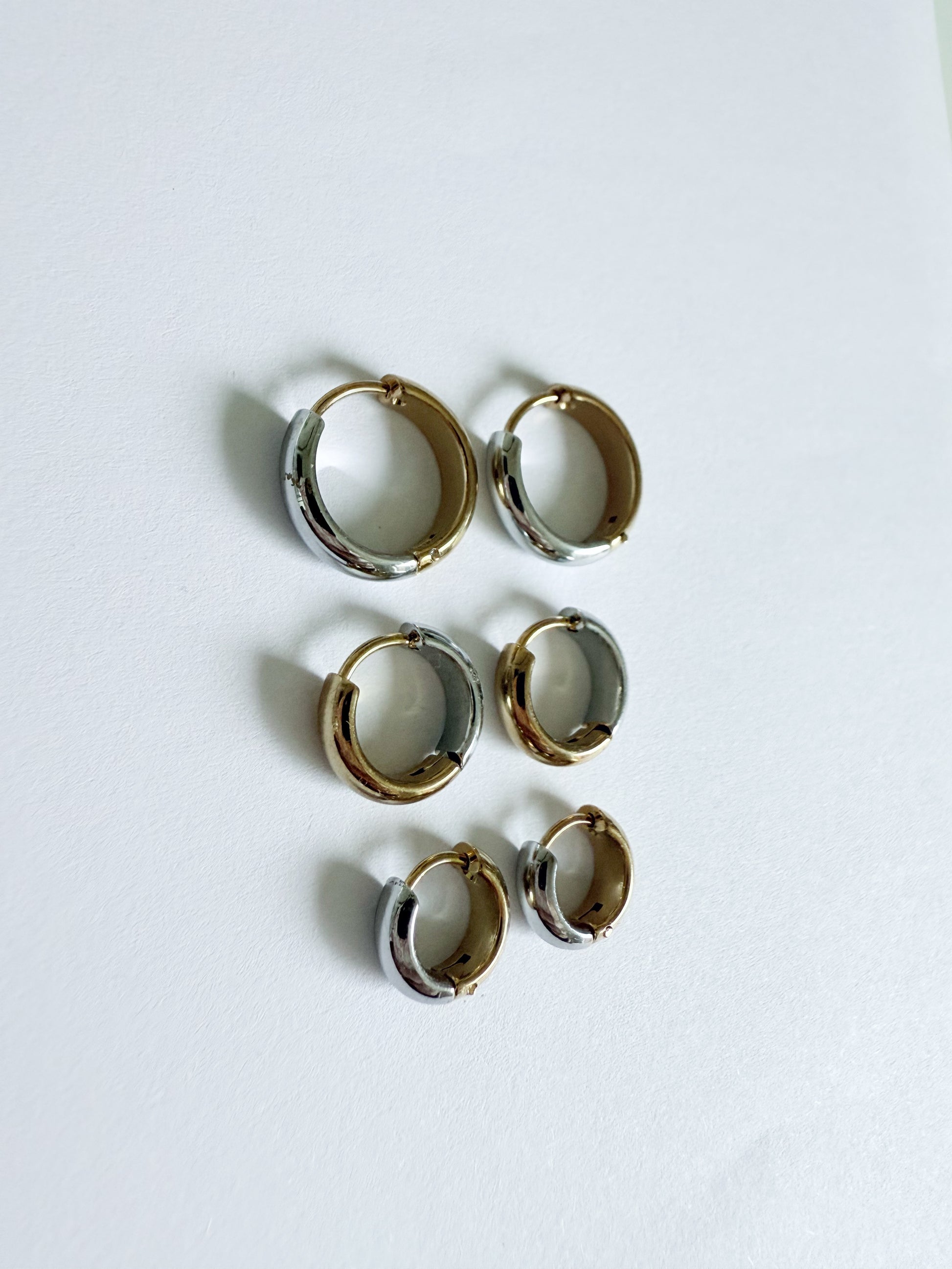 Crafted from durable stainless steel, these sleek huggie earrings feature a striking dual finish—glowing 18k gold plated at the front and cool silver at the back. Can be reversed to suit your style. Their minimalist silhouette meets modern contrast, making them the perfect go-to for effortless edge and everyday elegance.
