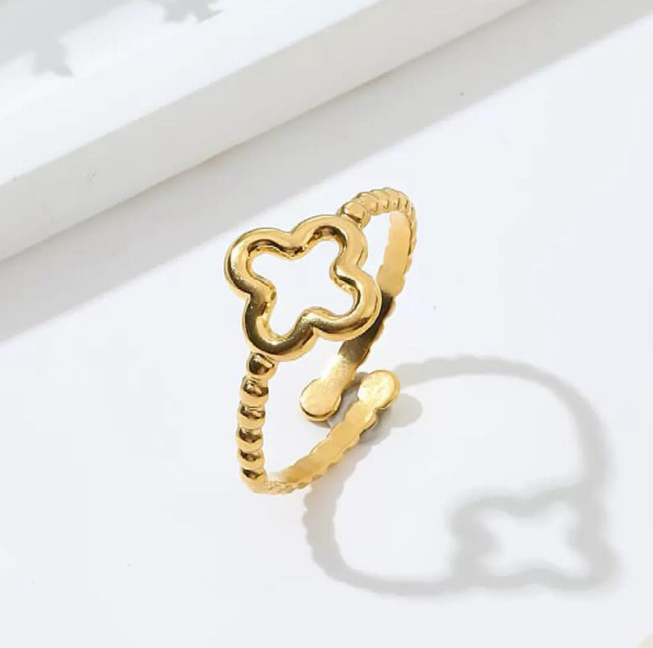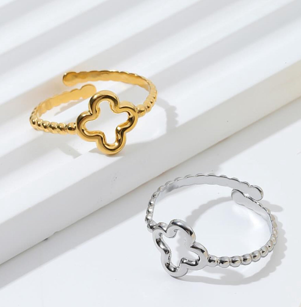 Bring a little luck wherever you go with this charming adjustable ring, featuring a delicate four-leaf clover centerpiece surrounded by playful bubble ball accents along the band. Crafted from high-quality stainless steel, this ring is durable, tarnish-resistant, and perfect for everyday wear.