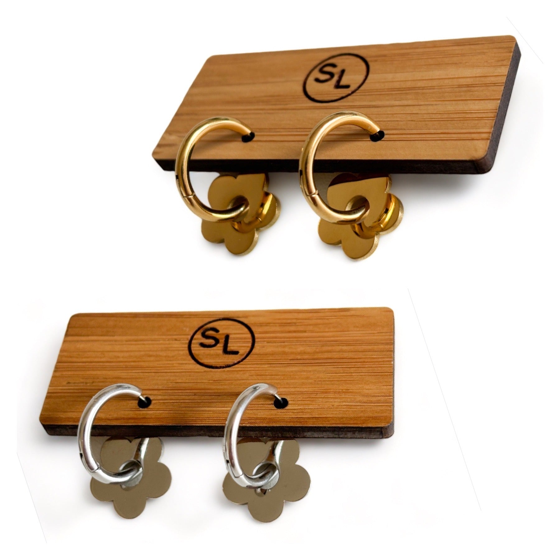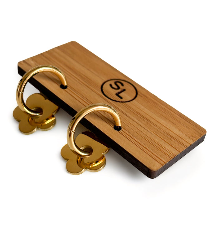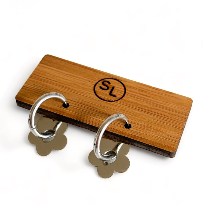 Introducing "The Daisy" earrings: A symbol of timeless beauty and charm, these stainless steel huggie hoop style earrings are available in both 14k gold plated and silver finishes. Adorned with a delicate daisy drop design, they exude feminine elegance suitable for any occasion. With an earring height of 2.2cm and an eardrop width of 1.5cm, they offer a dainty yet eye-catching look. Named after the beloved flower, "The Daisy" earrings are also waterproof, making them perfect for everyday wear. Embrace effortless style and grace with "The Daisy" earrings, combining fashion with durability for the modern woman.