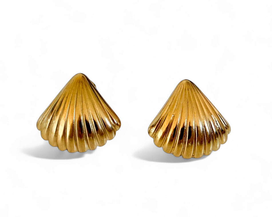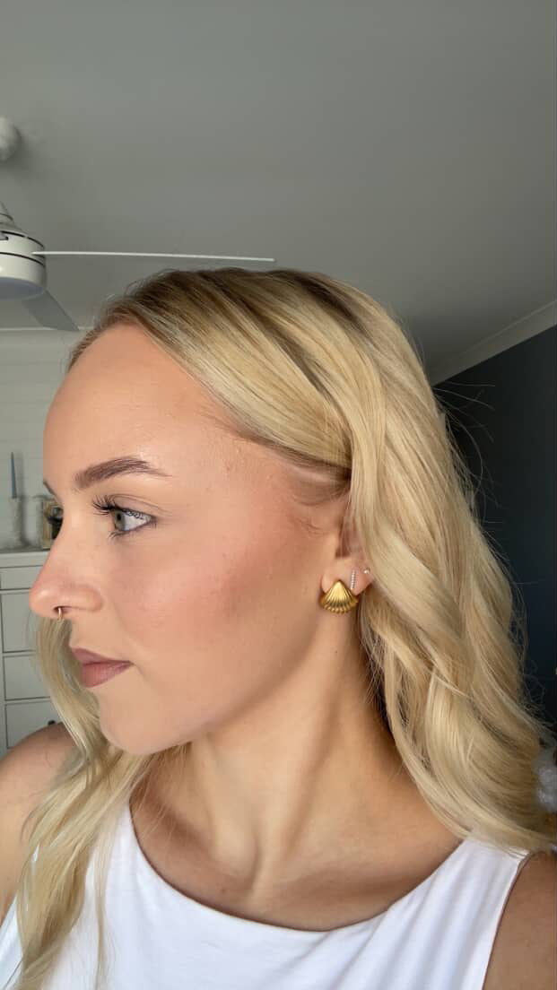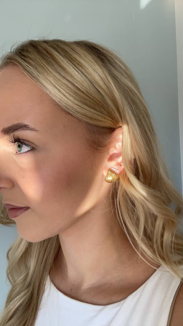 Introducing The Isla Shell earrings, they capture the delicate elegance of the sea. Crafted from durable stainless steel and plated with luxurious 18k gold, these petite, shell-shaped earrings offer a refined coastal charm perfect for everyday wear. At their widest point, the earrings measure 2cm, tapering down with a graceful, triangle-like shape that highlights the natural curves of the shell design