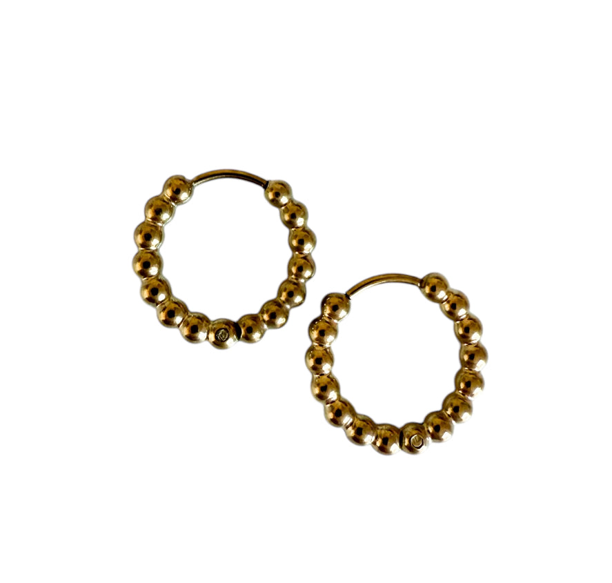 Elevate your everyday elegance with Madi — a sleek huggie earring featuring a delicate beaded chain design crafted from stainless steel and luxuriously coated in 18k gold plating. The smooth, polished beads form a graceful line that hugs your ear with subtle shimmer and timeless sophistication. Perfect for layering or wearing solo, Madi adds a refined touch of modern charm to any look.