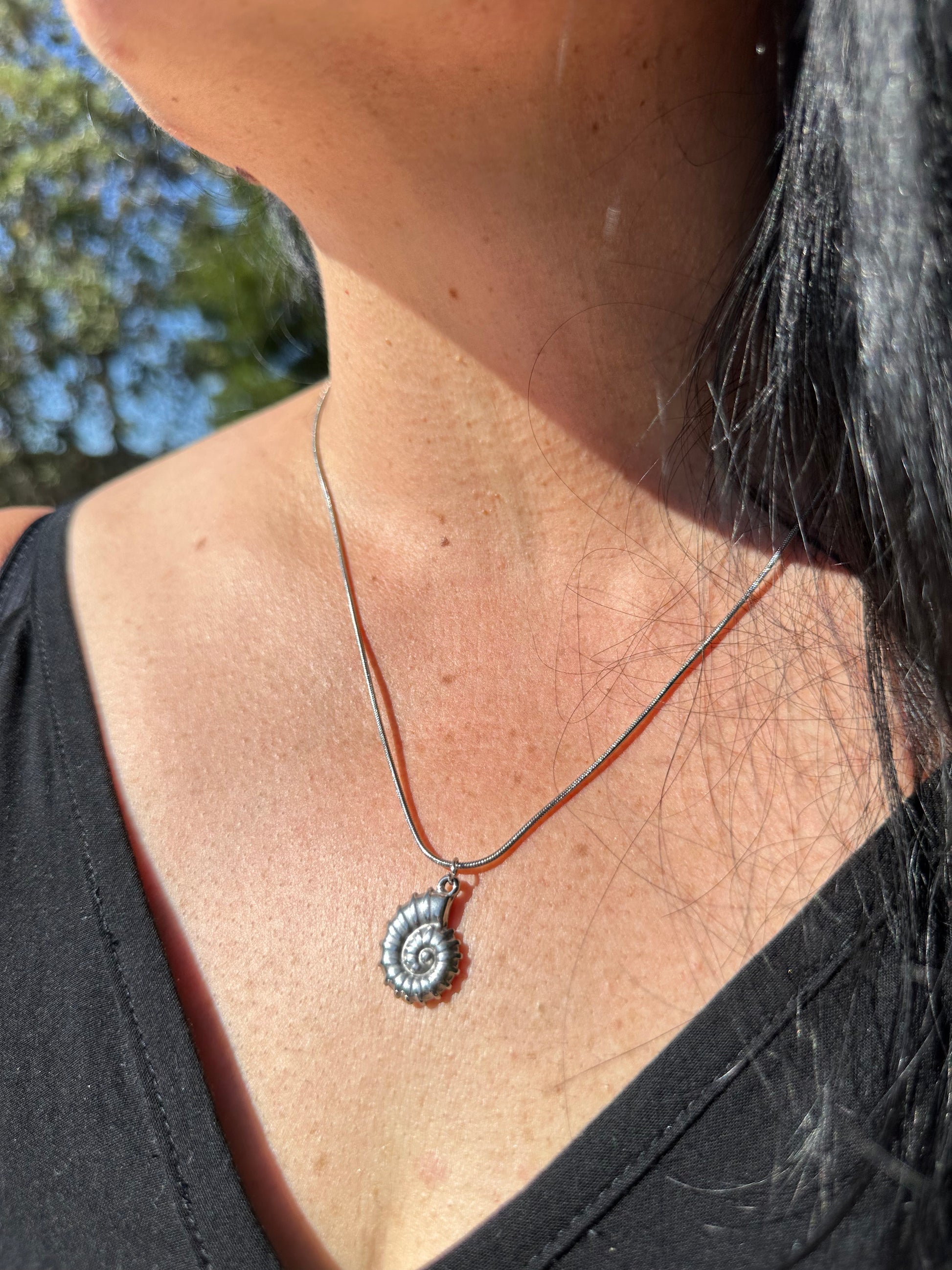 Inspired by ocean treasures, the Shell Pendant necklace features a bold yet elegant 2cm shell charm suspended from a sleek chain. Crafted from durable stainless steel and available in both radiant 18k gold-plated and polished silver finishes, this piece brings effortless coastal charm to your look. Whether worn alone or layered, it’s a striking reminder of the sea’s beauty and calm.