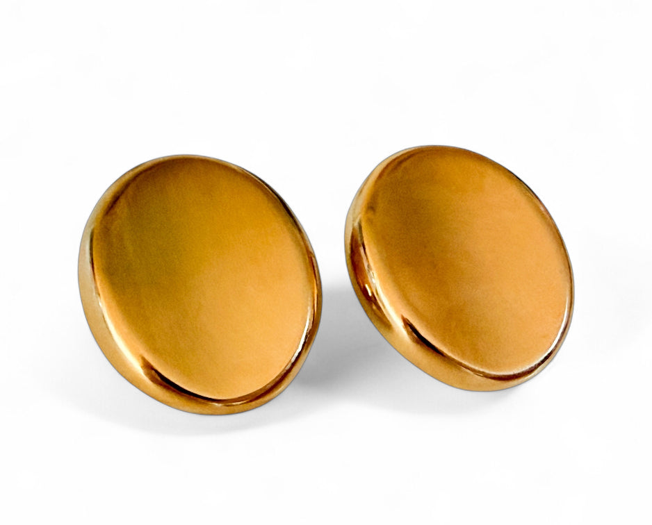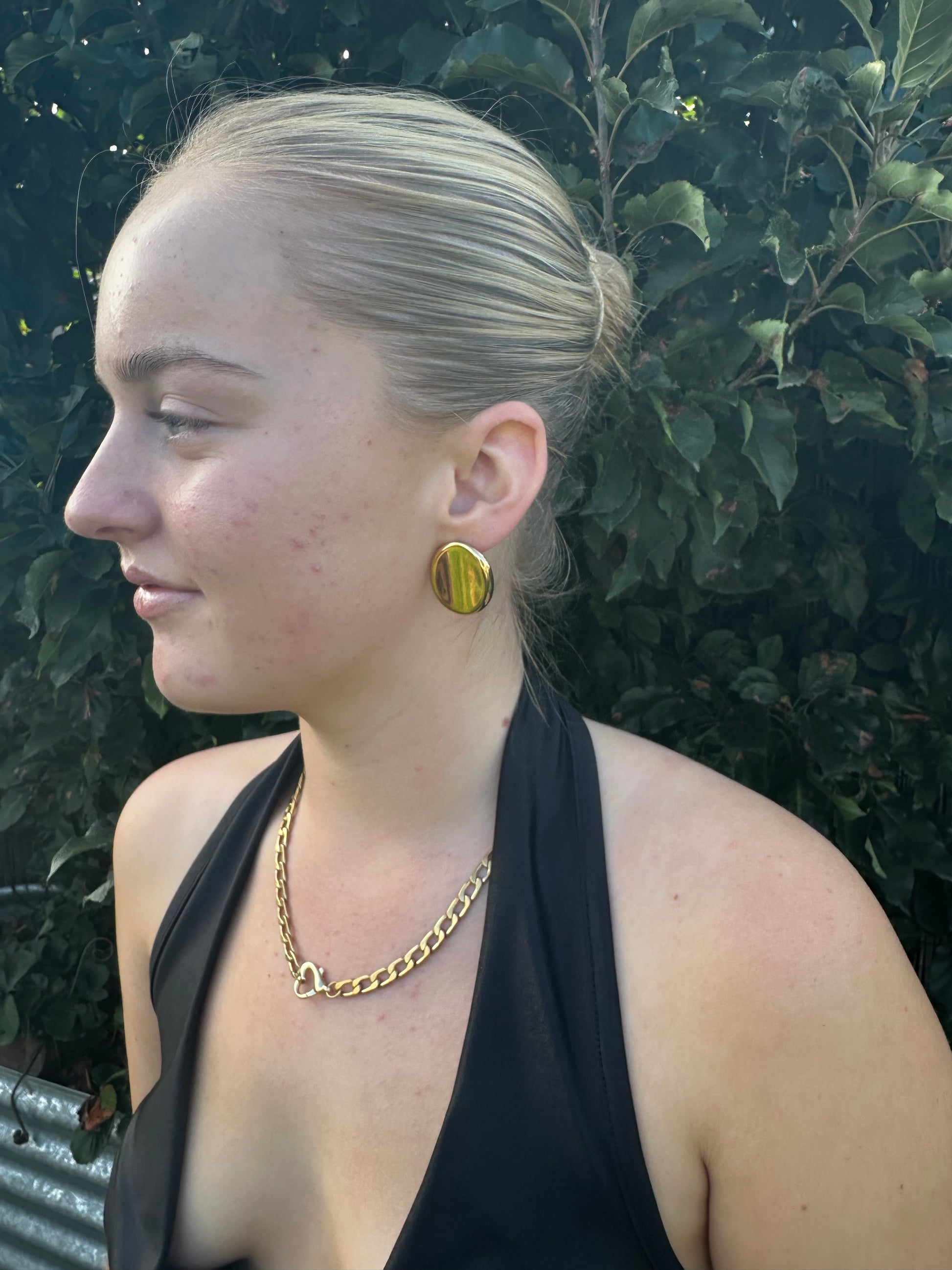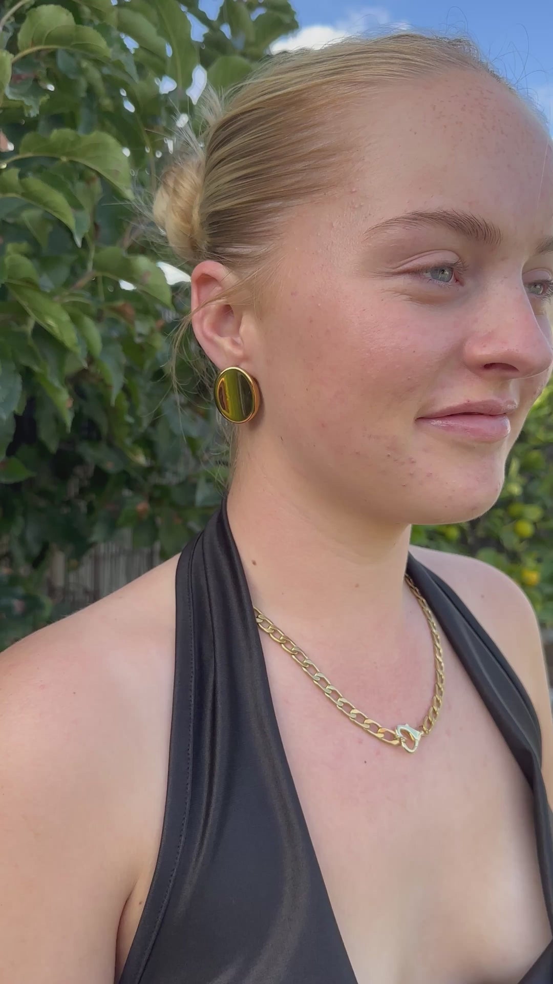 Experience the captivating warmth of The Shiraz Glow earrings. These elegant oval earrings, plated in luxurious 18k gold, are crafted from high-quality stainless steel with a subtle curve that enhances their sophisticated shape. Measuring 2.8cm in length and 3.2cm in width, their sleek, rounded design adds a graceful yet bold statement to any outfit.