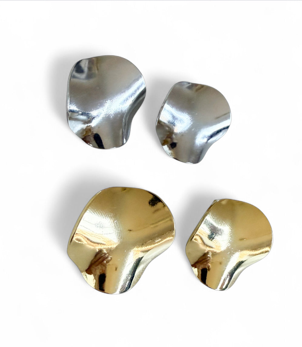 A bold yet effortless statement, the Sophie Earring blends modern elegance with timeless design. Featuring a circular silhouette accented by a graceful wave through its center, this piece captures movement and harmony in one sculptural form. Crafted from 18k gold-plated stainless steel and silver stainless steel, it's hypoallergenic, durable, and gentle on sensitive ears — making it as wearable as it is eye-catching.