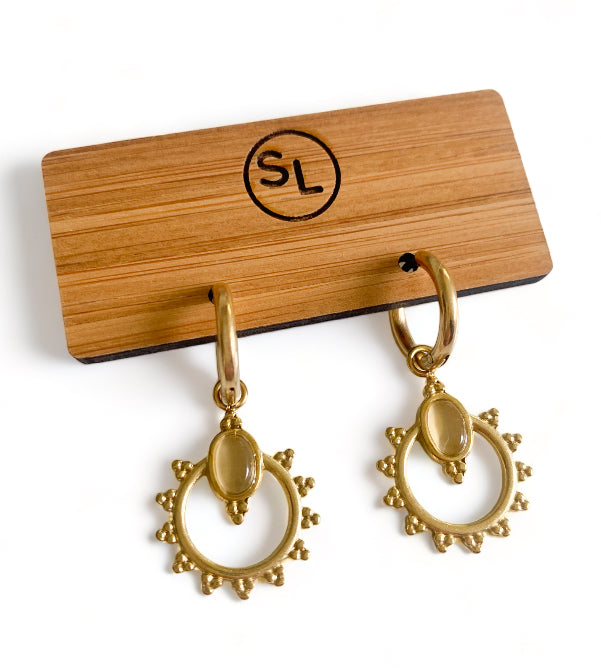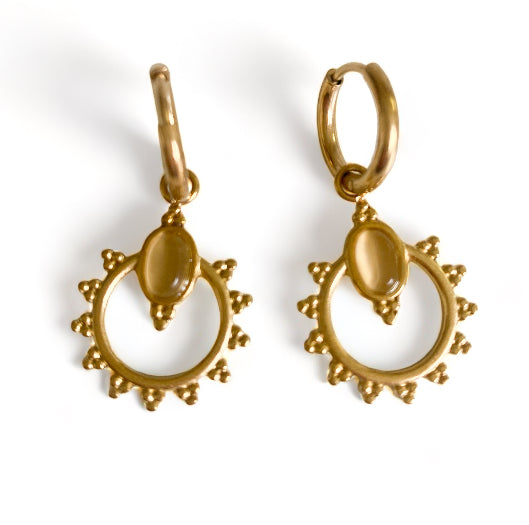 Introducing "Vintage Clara" from our Delicate Collection: Inspired by European vintage elegance, these earrings capture the essence of timeless beauty with a touch of sophistication. Featuring a stunning oval design with detailed circle accents, "Vintage Clara" exudes vintage charm and style. Available exclusively in 18k gold plated stainless steel, these earrings measure 3.4cm in length with a maximum width of 1.9cm, making them a delicate yet statement-making accessory. Waterproof for everyday wear, "Vintage Clara" offers both durability and elegance, ensuring you shine bright in any setting. Embrace the allure of European-inspired vintage elegance with "Vintage Clara" from our Delicate Collection and elevate your look with